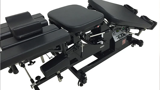 O sistema de Flexão-distração foi desenvolvido pelo quiropraxista Dr. Cox nos Estados Unidos e aprimorado pelo quiropraxista Dr. Leander Eckard. Com essa mesa é possível realizar um tratamento completo com o paciente, que permanece deitado durante o tratamento. A mesa é capaz de ser ajustada à posição antálgica para que o tratamento seja completamente indolor. Hoje o sistema de Flexão-distração é um dos mais eficientes sistemas para tratamento de patologias lombares, dentre elas a hérnia discal, artrose, espondilolisteses, discartroses e mais alguns tipos de lombalgias. Nesta mesa, aplica-se uma força de descompressão associada à flexão da coluna vertebral exatamente no nível a ser tratado.